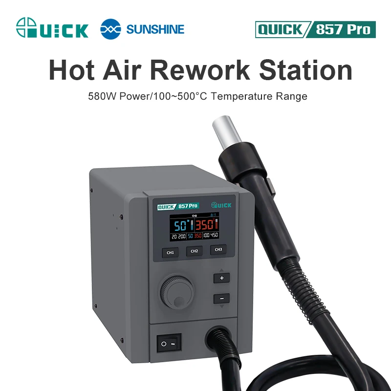 Versatile Equipment Repair:Designed for a variety of equipment repair, the QUICK 857 Pro Rework Station is a versatile tool for professionals.